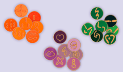• Cartas con los símbolos. Símbolos impresos sobre cartulina presentados en forma de baraja de cartas.